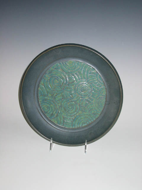 Blue Platter with carved swirl detail